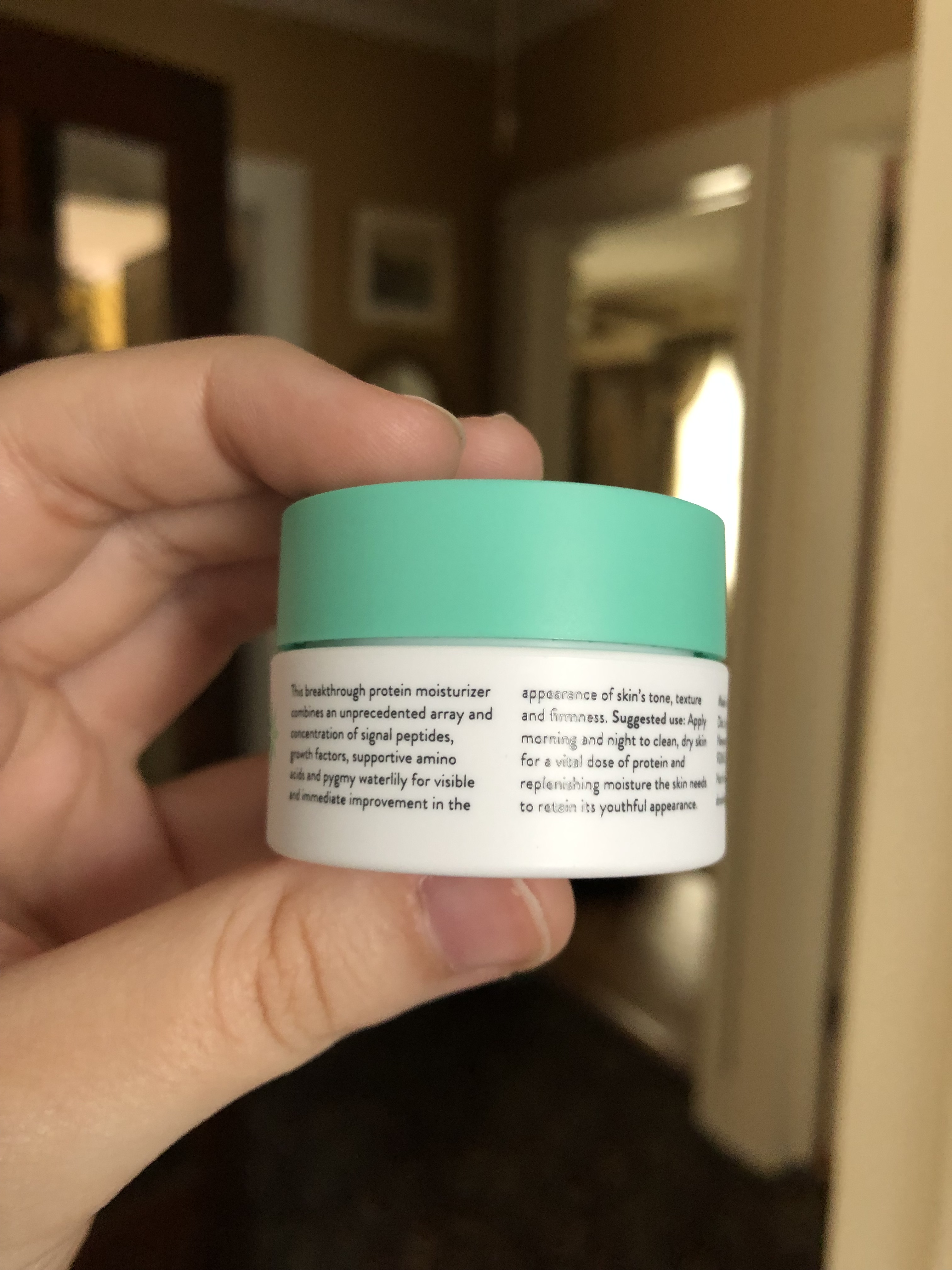 Protini Polypetide Cream is pure magic; this moisturizer skins into my skin quickly and does not leave behind a weird residue on my face, which some creams have done in the past. I have noticed that it has improved the texture of my skin – I had some stubborn bumps above my eyebrow and with using this for the past couple of weeks, I have noticed that those bumps are almost gone. This product has also made my skin feel rejuvenated and look more healthy. After applying this, my skin looks glowy and fresh. I’m on the fence about purchasing the full size of this product since it is so expensive (it’s $68 USD 😬), however I feel as though I may end up buying it once I run out of this sample since it has improved my skin greatly.